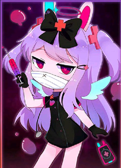 雪白皮肤,紫色头发,穿着黑色护士服,头顶有光环。