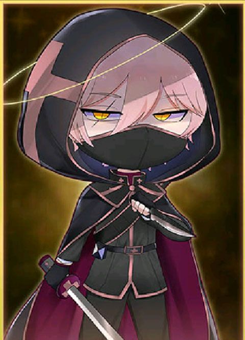 男性角色,褐色头发,穿着红色披风和黑色军装,戴着面罩,手里拿着一把刀。
