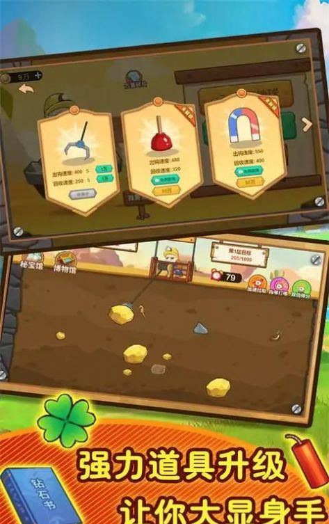 2、玩家需求不断开掘黄金和其他宝藏,才干赚钱购买更多的道具和配备,提高自己的才干;