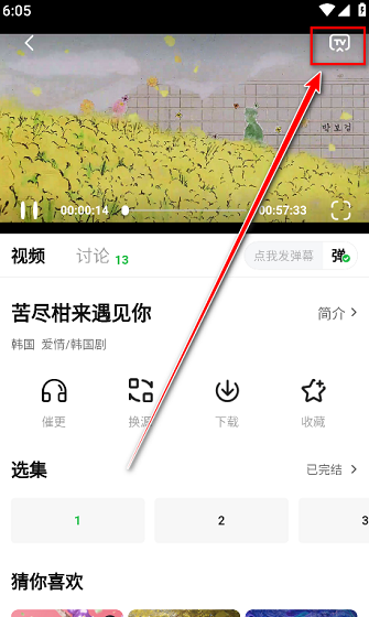 2、点击箭头所指的投屏图标。