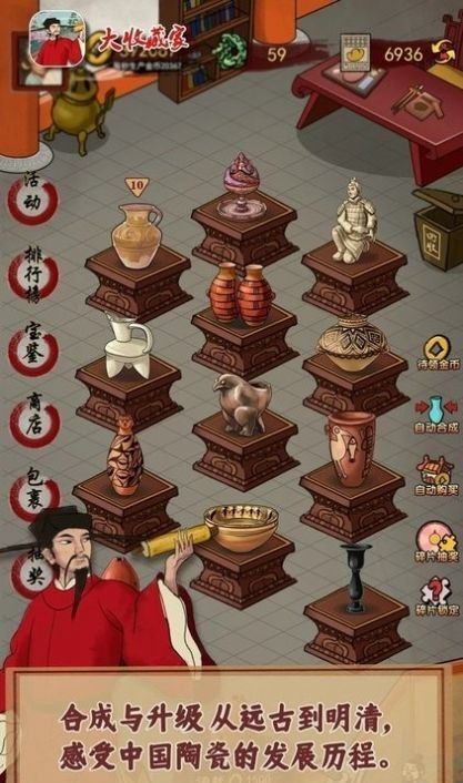 《大收藏家》是一款古风题材的经营赚钱游戏。玩家在游戏中成为知名的古董店老板,通过收藏古董等各种值钱的物品来赚取差价,你需要不断的提升自己识货的眼光,才能大浪淘金,找到值钱的东西,为自己的古董店带来更多的收益,让玩家体验到收藏古董的乐趣。玩法轻松,支持放置,打发时间很轻松。