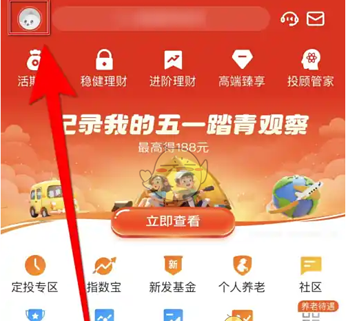 1、打开《天天基金》App,天天基金主界面点击右上角的《人像》图标打开账户管理界面。