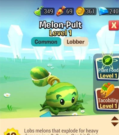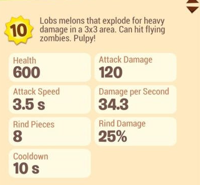 西瓜投手主要的厉害之处就在于可以造成范围性的伤害。扔出去的西瓜一旦在砸中目标之后,那就可以直接覆盖一个3×3的区域。不管是一群僵尸挤在那边还是单个的僵尸,全部都可以轻松的应对,基本上一次性攻击就可以消灭大部分的僵尸效率还是比较高的。也有一些人就会比较关注阳光的成本,基本上种植一个也只需要10点阳光。要知道在游戏中阳光的积累并不算很快,10点的成本还是很亲民的,一开始就可以去种植。
