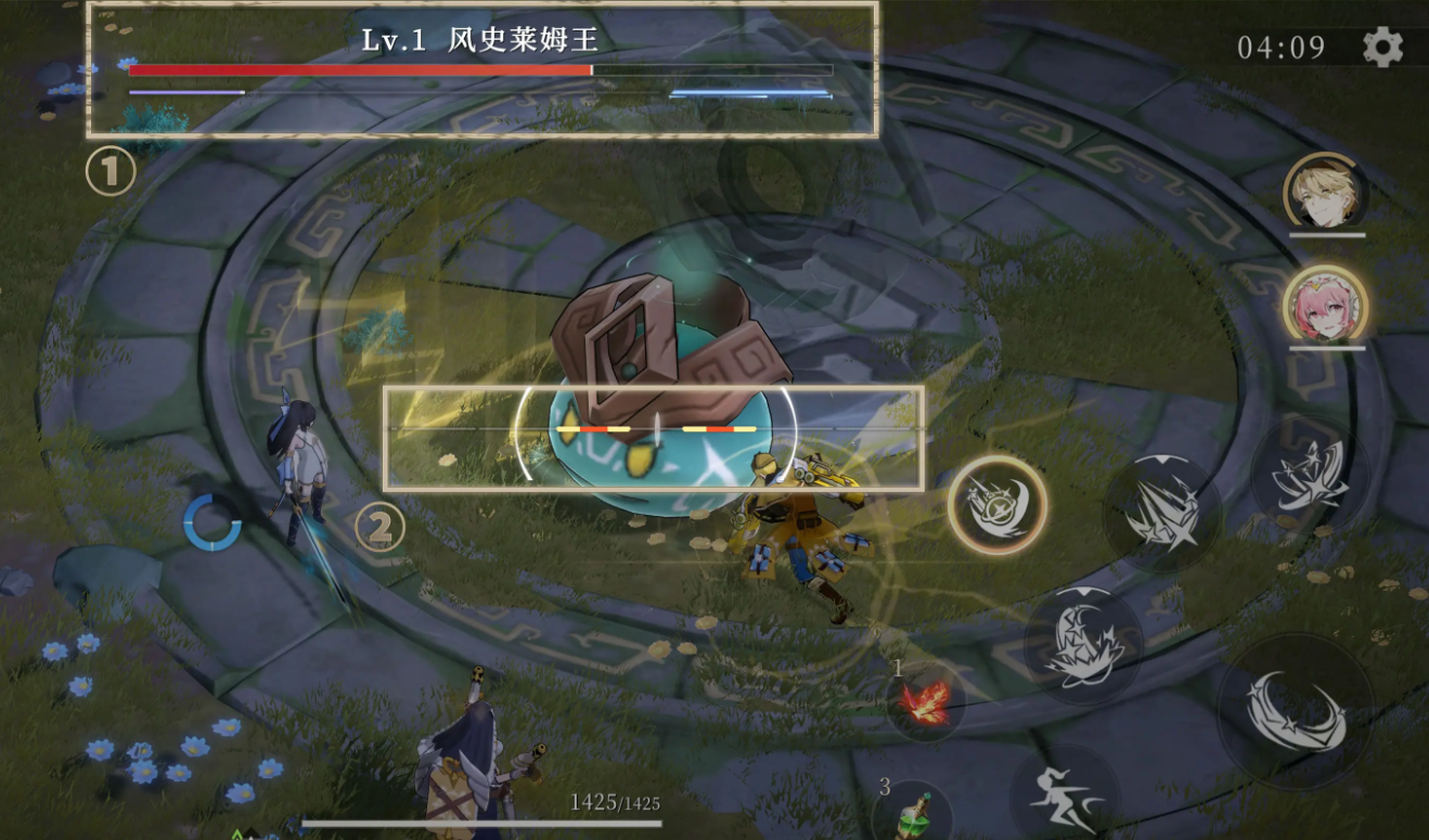而且在敌人身上有弱点标注的时候,对弱点的位置进行打击带来的伤害是最大的,所以这就是其中战斗里面的最强机制,在大家进行队伍攻击的时候,最好是安排有一些破甲能力的角色,在这款游戏当中破甲其实针对韧性效果带来的优势是最大的,打到敌人有弱点的这些地方,最多可以多50%的伤害,而且在打boss的时候,他在血量达到70%以及30%这个阶段的时候,会有一个前摇的动作,基本就是boss会放大招的时候,所以大家要紧盯好这个技能预兆的动作,此时大家就可以开无敌的技能来躲闪,最后20%的血的时候,Boss是最厉害的,因为此时带来的大招输出伤害也是最高的,所以大家可以在队伍里面放一些有护盾的角色,大家放护盾的话就可以带来足够的防御。