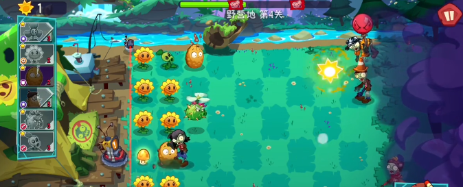 接着来说一下,那变身茄子,至今为止也没有知道到底是什么样的作用。说是可以变成其他的植物,但是每一次都是随机变的。有的时候会变成一个大喷菇,说实话还是比较好用的,但有的时候又变成一个小太阳花,在关键的时候一点作用都没有。在随机变错了植物之后,也没有来得及去补充上面的那一排就会直接被僵尸偷家,这真的还是让人很生气的。不过在打完后半段之后还是比较刺激,正想要补种植物,结果又发现来了一大波,屏幕上还会有提示,所以变身茄子怎么玩还是很关键的,只是目前为止,还并不知道应该怎么玩。