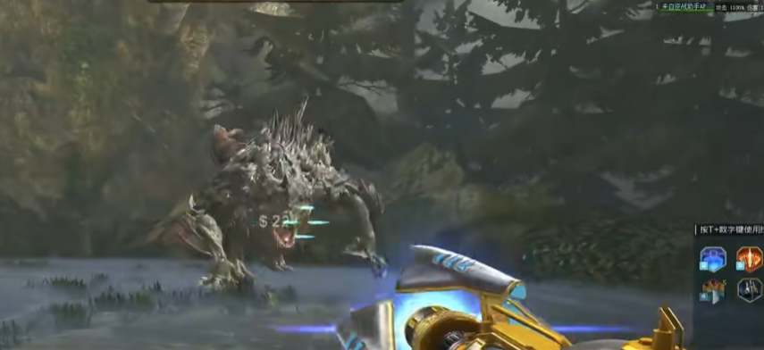 左键能够射出激光能量弹,点击右键武器就会化身成为烈性榴弹发射器,烈性榴弹发射器可以发射出伤害力极高的榴弹,有着很远的射程,适合在中远距离作战中使用,在战场中通过激光能量发射能迅速的把狂热给积攒起来,只要进入狂热状态就能进入到不消耗弹药又能高速射击的状态,这时直接将武器的烈性榴弹发射器给切换出来,玩家将会感受到更为爽快的射击体验,不管是在清小怪还是击杀最终boss,烈性榴弹发射器都有着强劲的击杀效果。