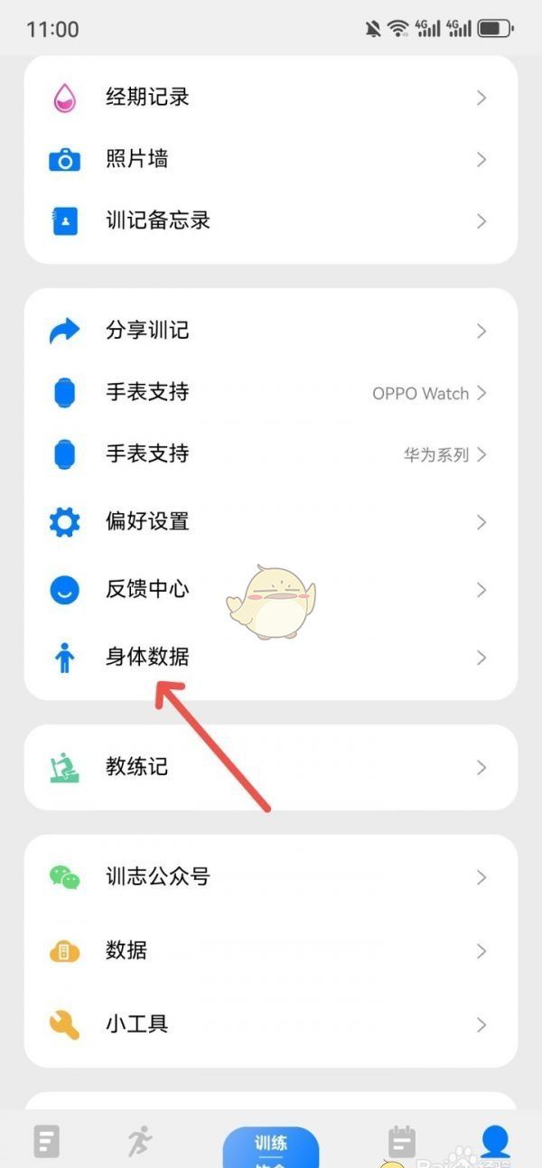 1、打开训记应用软件,进入我的页面,点击身体数据选项