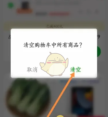 2、然后我们继续点击【清空购物车】选项;