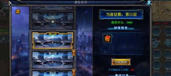 虚拟空间每周末晚上10点后不可进入,进行排行榜奖励结算。每周可挑战层数为上周最高可挑战层数减5。