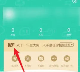 2、在我的图标页面,找到左上方的VIP标识,点击进入。