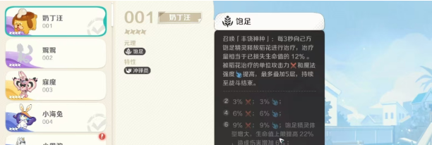 核心特性:「饱足」元理赋予奶丁汪独特的团队治疗与属性强化能力