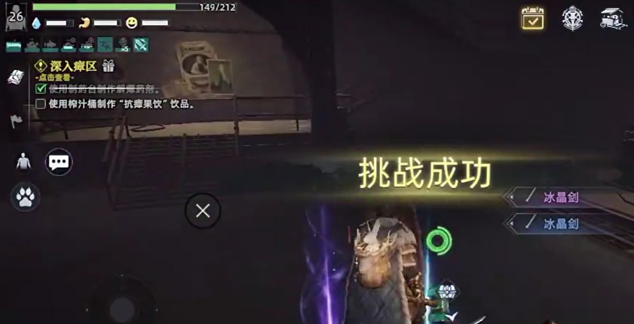 能获取冰晶剑的副本为雪山地下设施,在难度3时就有1%概率掉落金色品质的冰晶剑,而且掉紫色冰晶剑的概率很高,再加上难度4时金色冰晶剑的掉落概率只增加了0.5%,所以更建议想获取冰晶剑的玩家在前期只考虑刷难度3,等练度升上来或自己有更好的装备后,再去挑战难度4。此外,难度3的推荐等级虽然为36级,但技术好时20多级就可前去挑战,也令它成为刷冰晶剑效率最高的副本。此外,由于副本的位置在冰原,会受到寒冷影响,所以在下本前最好先给角色吃两个抗寒药。