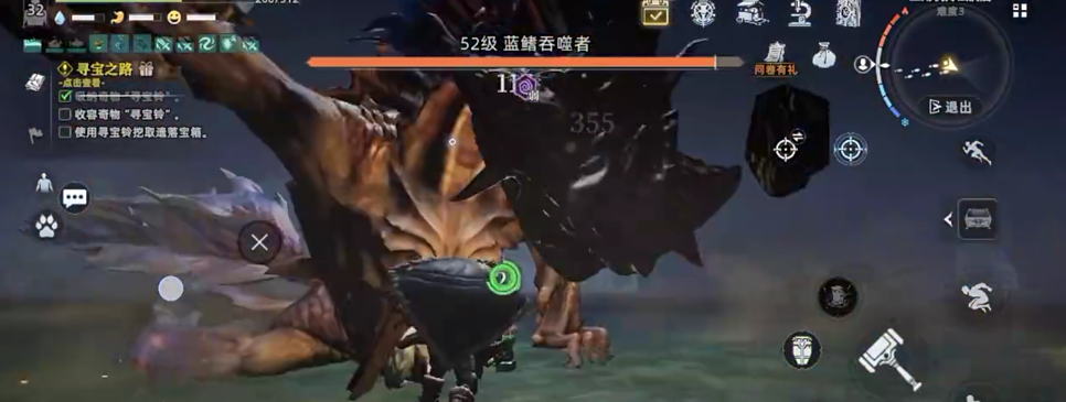这里在打蓝鳍吞噬者的时候,小编建议大家使用近战武器锤子,锤子对于boss有着很高的伤害,然后在把驯化的宠物召唤出来和自己协同作战能够加快击杀的速度。