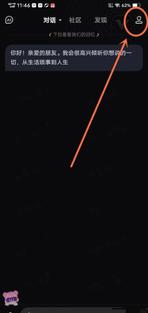 1、打开文心一言APP首页,点击右上角“人像”图标。