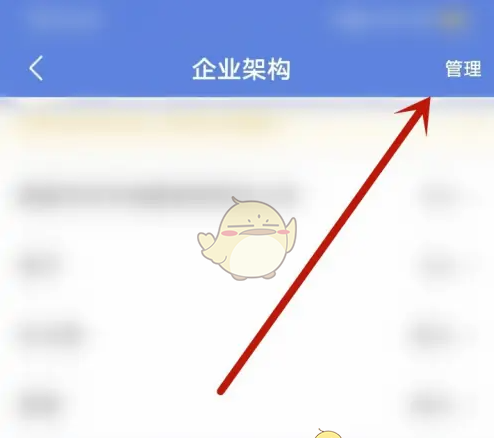 2、企业架构页面,点击右上角管理部门。