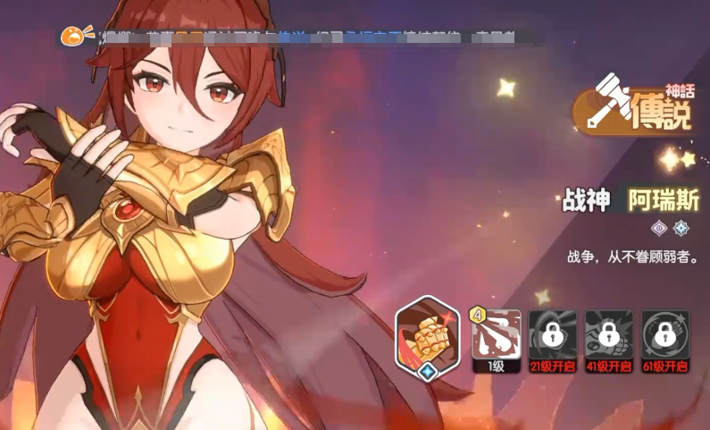 阿瑞斯是游戏里的一个战士角色,所以血量自然是比较优秀的,除了作为坦克在前排抵抗伤害之外,角色还会有较高的爆发近战输出能力,可以在战斗的时候,利用各项技能在游戏里打出高额的伤害,战斗过程中,首先可以用最常规的普攻技能附加大范围的物理伤害,对手每受到一次伤害,玩家都可以积累5%的能量,等能量攒满之后就可以强化奥义技能或者是绝技,角色的后羿技能名叫千钧神陨拳,使用这项技能之后可以对中等范围的敌人,带来600%无敌伤害,每一次伤害还可以带来击退能力,能量攒满的时候,角色还能附加44%的额外伤害,除了单纯的攻击之外,受到伤害的对手还会产生4秒的眩晕。