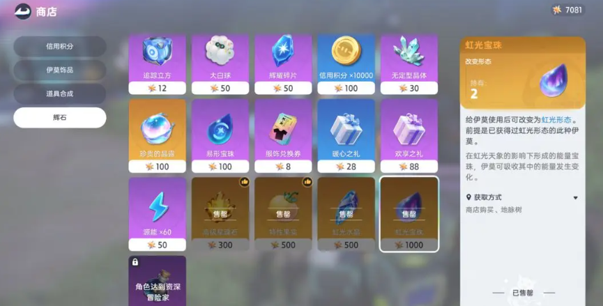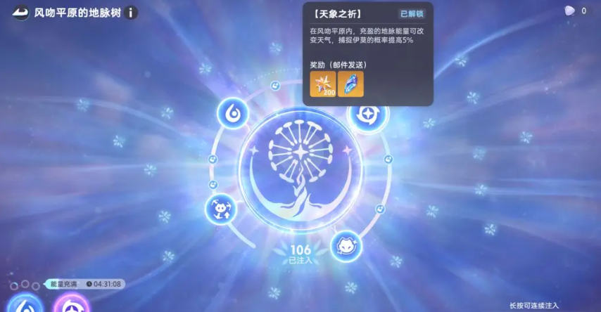 虽然这里大家可以通过随机的天气来获取这些特殊类型的宠物,但是在有一定需求,也比较紧急的情况下,大家也可以通过手动的方式来进行更改,这里的话建议大家可以查看自己手中有没有道具,手动更改天气操作是非常简单的,因为这里有一个道具叫做虹光水晶,它是被地脉兽吸收以后,可以引发虹光天象的一个道具,也就是说就算自然天气没有大家想要的情况下,使用它就能调整当前大家所处区域之内的天气情况,变成虹光天气,但是使用的前提是有一定的条件的。
