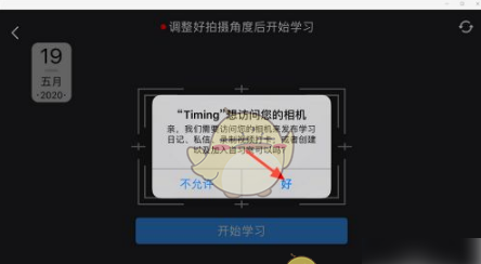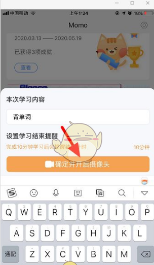 3、输入本次学习内容,比如“背单词”,设置学习结束提醒,点击“确定并开启摄像头 ”。