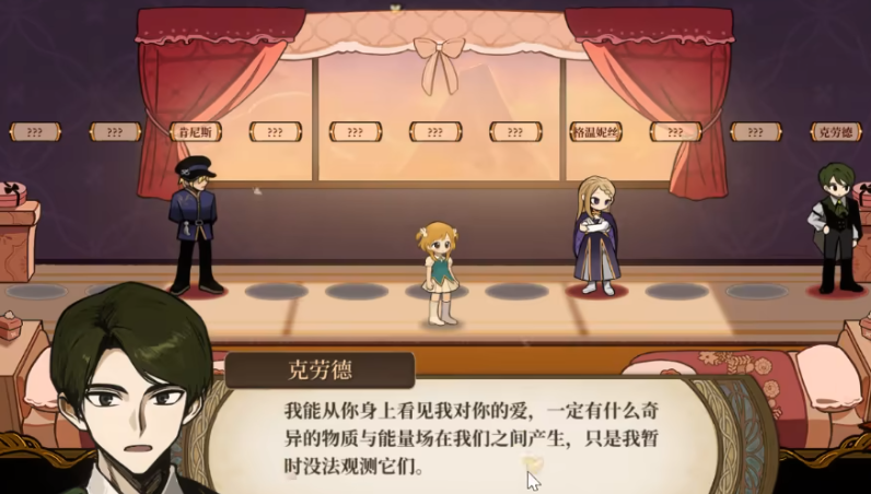 除了这个角色之外,还有很多其他的角色可以攻略,还要去多选择克劳德的喜好以及话题进行沟通,这样经过三个阶段之后就能从最普通的陌生人,达成双人情感的结局,角色在游戏里非常有好奇心,要通过多和对方沟通对话,让好感度更高,另外就是选择对方喜欢的物品赠送,有需要的玩家可以尝试去攻略这个角色,