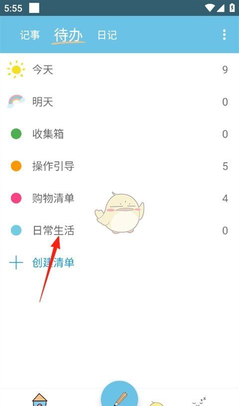 1、点击打开秒记记事app后,如图所示,点击“待办”,再点击箭头处。
