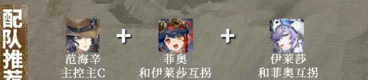 游戏当中的范海辛,他不仅有一定的远程输出能力,他在团队里一名还可以带来很强的控制以及爆发效果,在游戏当中,范海辛除了在输出效果上面有一些高频率的远程攻击能力之外,其实站桩输出效果也是非常不错的,目前在他本身的技能机制里面,其实这个角色是可以跟一些枪械型角色一起上阵的,因为毕竟他也是作为一个枪械型属性的角色使用的,那么如果进行配对的话,建议大家可以将它跟菲奥还有伊莱莎一起组成一个阵容,这样阵容里面的主要核心就是范海辛了。