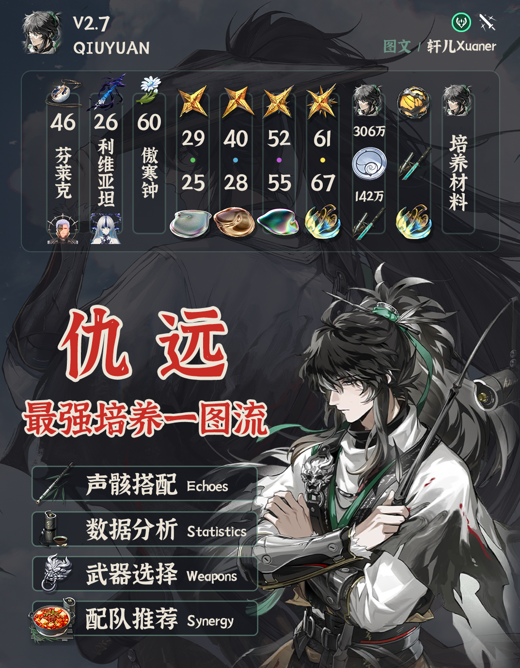 以上就是小编整理带来的鸣潮V2.7仇远怎么培养,V2.7仇远最强培养一图流,更多相关游戏攻略,请关注!