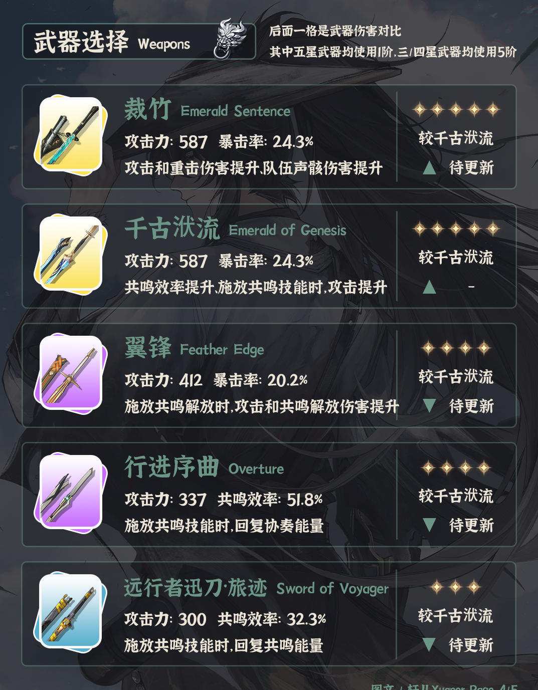 ④ 仇远武器首选专武裁竹,其余武器可以考虑加共鸣效率的武器。