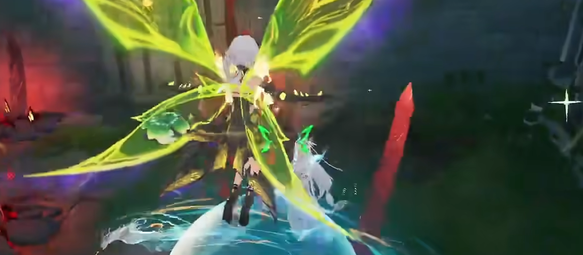 最主要的核心是“茧中幻景”,当角色迅速的往前移动之后,会留下一系列的幻影,这样会对敌人的视线造成影响,并且这些幻影可以减轻敌人的移动速度,所以当他们的移动速度被降低的时候,就可以迅速的释放出伤害,当达到破茧的状态之下会释放出追踪磷粉,这些都可以转化成伤害,对敌人造成暴击,所以无论是在茧中还是在茧外,都可以对敌人造成伤害,这是它最核心的玩法,玩家可以先掌握这种玩法,对后续的其他玩法也可以有一个铺垫。