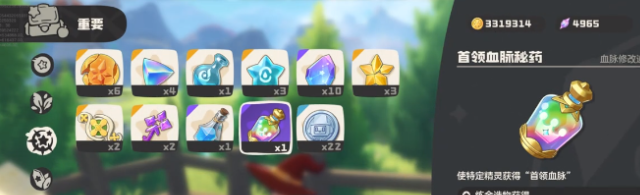 到了炼金塔之后就可以找到基础炼金界面,然后把刚才拿到的10个首领血脉全部放到材料栏,此时就会消耗一些基础的资源,在经过合成之后,就可以获得首领血脉秘药,这就是精灵在血脉觉醒时的核心道具,因此一定要选择妥善的保存。接下来自然就是给目标的精灵使用秘药,确定好要进化的精灵,例如经典的火神,这就是具备进化潜力的精灵。在打开背包之后找到药物点击使用,然后选择要觉醒的精灵,只要符合进化条就可以使用。