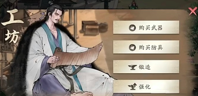 玩家们会开启的第一个建筑——工坊,作为府城当中的核心建筑之一,玩家在这里不仅可以购买武器、防具,而且还可以在线对手下武将进行装备升级,在这里完成对武器的锻造强化,而且每一次武器装备升级,都需要玩家在攻防当中消耗一定量的材料,总而言之,相当于游戏当中的武器系统。