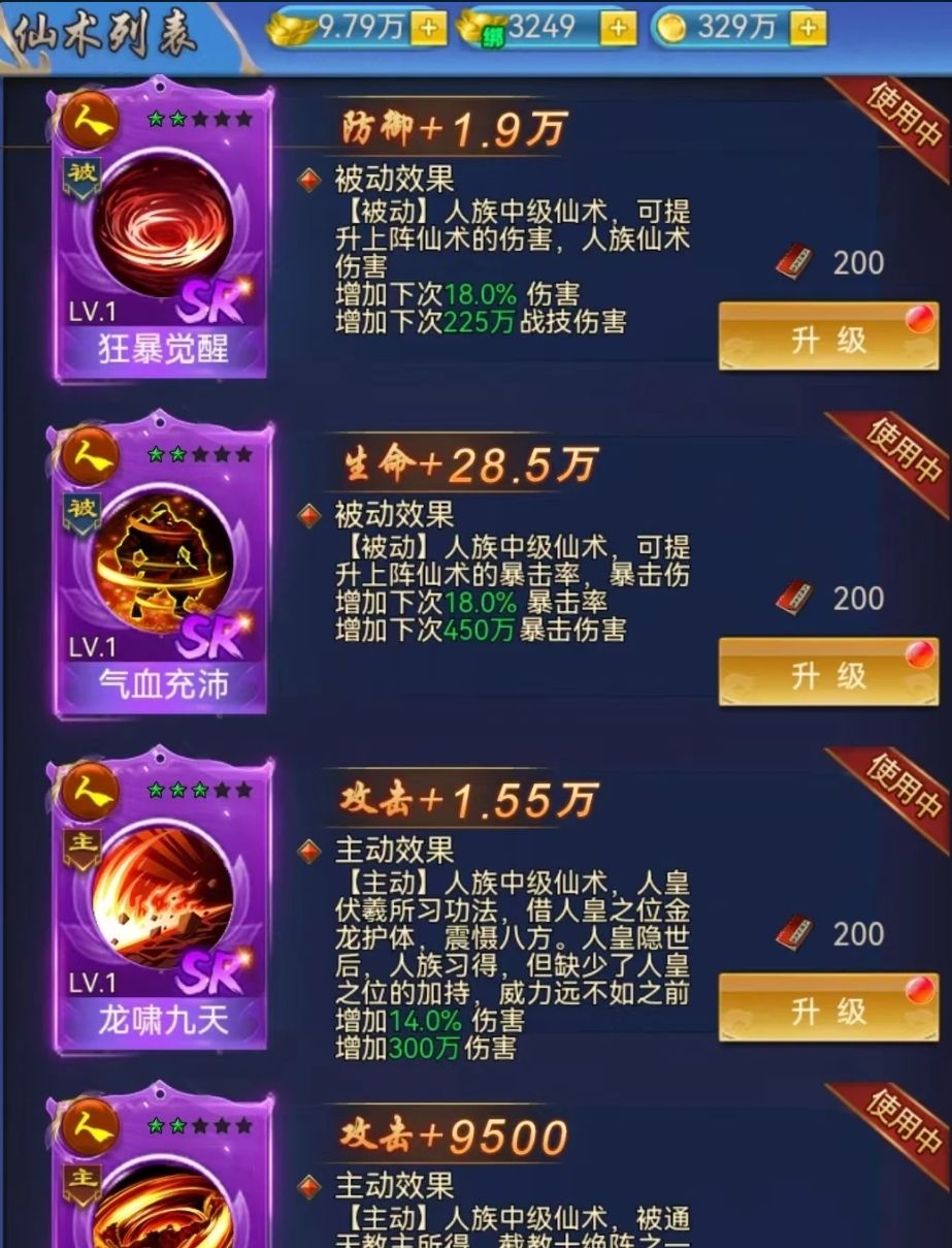想把神器的等级和品阶给弄上去,得花点功夫,你要参加活动去挑战副本,或者靠仙盟任务收集碎片,一步步把神器给激活,激活之后,神器的技能就会自动加到角色能力上,不管你是装备还是不装备,都会生效。
