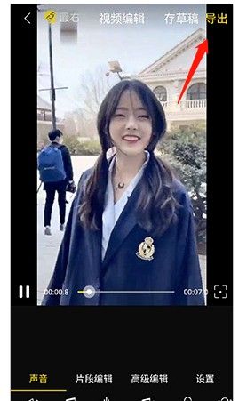 1、进入视频编辑页面,点击右上角的“导出”选项。