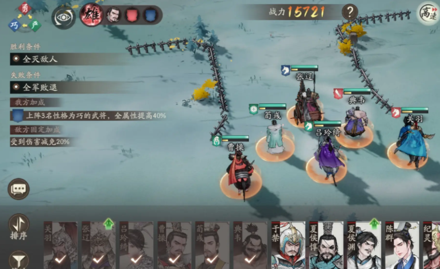每场战斗共会为大家提供三轮机会,你要做的就是在这三轮之内,把敌方的血量给减到零点。如果说在这三轮结束之后,你们双方的血量都没有归零,那么就会开启下一回合的战斗。除了武将和卡牌之外,游戏内的奇谋系统也是帮助你取胜的关键,不过切记要在合理的地图使用,才能发挥出作用,不然可能会适得其反哦。