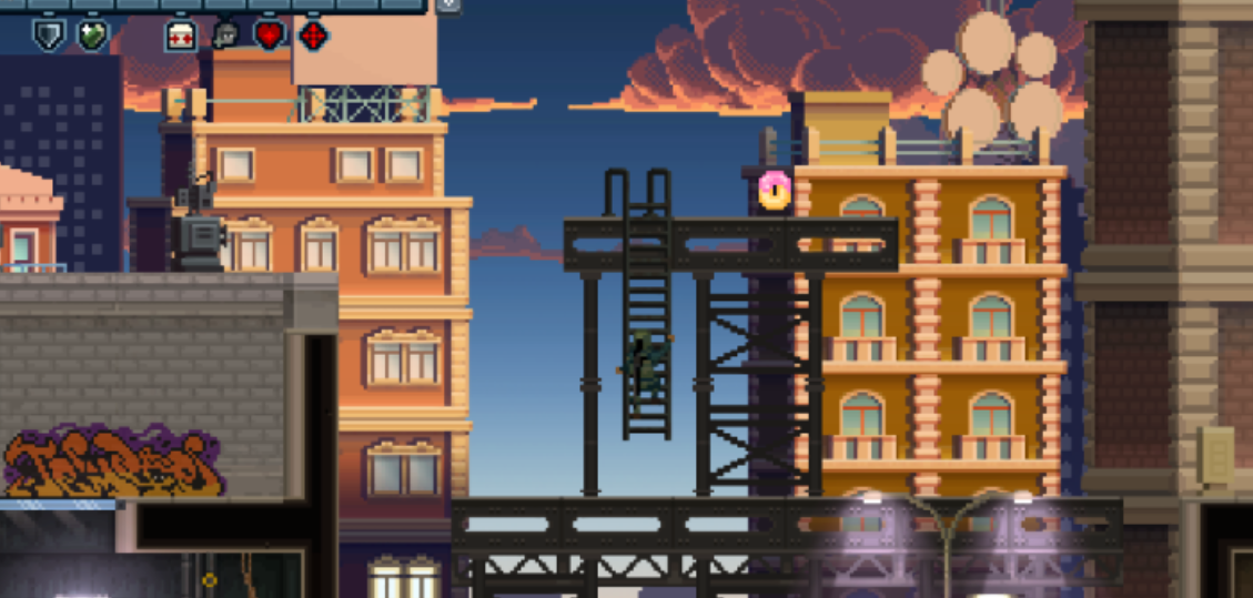 游戏第一个章节就有甜甜圈,位置在1-3的大使馆关卡,玩家进入关卡后,到第一座和第二座的中间找到高架平台,向左跳,就能捡到第一个甜甜圈,这个位置很容易会错过,只要掌握了跳跃技巧,就能轻松捡到。在1-5关卡中甜甜圈的位置比较隐蔽,进入关卡后前往地图的右下角找到高架,击败敌人后顺利到达顶部就可以轻松拿到甜甜圈了。进入1-8关卡之后,玩家需要去一楼最右侧,走到地面顶部才能找到甜甜圈,这个位置虽然比较简单,但是同样需要小心敌人的阻击。1-12关卡,甜甜圈在右侧建筑物的屋顶上,屋顶上有一名狙击手,玩家需要绕过他,完成突袭,才能爬到屋顶的台阶上,捡起甜甜圈,这一关比较难,玩家需要打败敌人,而且要有较好的跳跃。