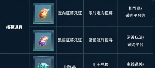 先来看一下核心的招募道具,如果想要抽取强力的角色,那不能缺少的就是黑盾征募,还有定向招募。定向征募凭证凭证是限时间的,主要就是通过采购平台去兑换,在赶上活动时就应该选择多囤积。黑盾征募凭证相对来说是比较常用的,常设的玩法通关之后就可以拿采购平台也可以兑换。在积攒足够之后就可以设矩阵去搜寻抽卡,并不需要去等待限时活动。日常的活动每天都可以刷,只需要花10分钟就可以清理完毕。