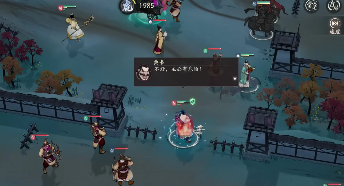 在典韦救主的支线当中,典韦的核心机制是反击,当他受到伤害时,会立刻反击随后再行动,这一机制在每一次遭受到敌人攻击时,可以轮番触发,固然,典韦非常适合和一些高血量的单体目标进行作战,但倘若遇到了大量单位进行绞杀,典韦很可能会当场死亡。