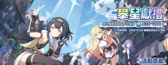 除了这一些奖励之外,玩家还可以获得攀星献礼的福利。一旦在提升权限等级之后,那就可以额外的领取12,600个星之砂,从二级到15级每提升几级就可以直接获取1800个星之砂,在全部积攒之后,那自然就可以用来抽卡,又或者是养成角色,全部都是比较划算的。要是参与幸运寻宝铲活动,在完成任务之后还可以获得积分。甚至还可以通过兑换的方法获得一些实用性的礼物,例如真格拥冠礼盒这些实用道具,这些相当于白给资源确实别错过。