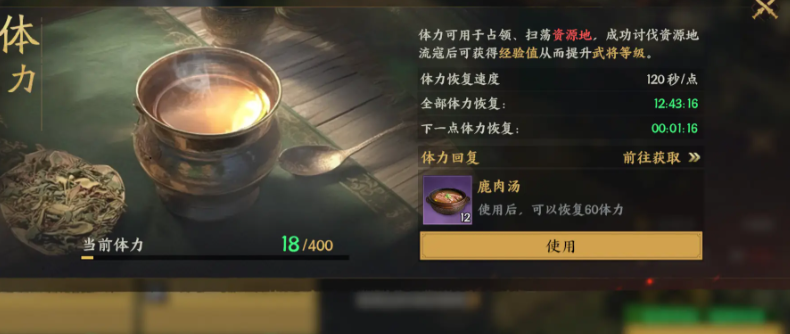 在三国群英传:策定九州里,体力是推进PVE玩法的核心资源,不管是前期开荒打资源地,还是后期养武将、搞城建都离不开它,和很多游戏不一样的是这游戏的体力上限是固定的,不会随着玩家等级提升或者解锁新玩法而增加,从开始到后期都保持着同一个数值,这样玩家每天能分配的体力就有了明确框架,不用费心去计算等级带来的上限变化,体力会自动恢复,恢复速度是固定的,不会因为其他因素变快或变慢,不过要注意一旦体力满了,自动恢复就会停下来,所以得记得及时用掉体力,不然恢复的量就浪费了。