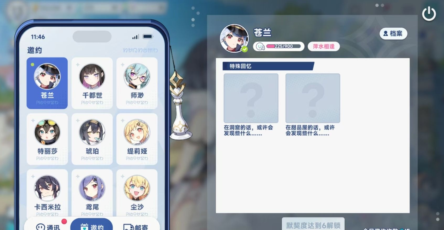 邀约是一项需要人们与角色默契度到达6级后,才能进行的玩法。玩家们每天最多能进行5次角色邀约,开启后会进入角色的专属剧情。剧情中若是出现特殊回忆,还会在剧情完成后收录到邀约系统中供各位随时去查看。邀约开启时,各位需要与角色一同完成剧情后才能拿满奖励,要是在邀约过程中退出,只能拿到最为基础的默契度奖励,所以各位最好在空闲时间开启与角色的邀约,确保每次邀约时都能将奖励拿满。