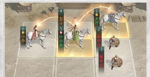 小乔和大乔的站位要确保同时触发孙尚香的追击。