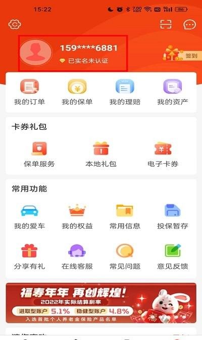 中国人保app身份证信息修改方法: