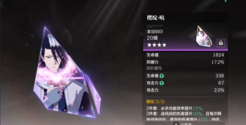樱绽套装是一套能够增加生命值和防御力的套装,此外,这套刻印还有着极为强大的属性,当玩家穿戴2件樱绽套装时,必杀充能效率会直接提升22%,东仙要的输出频率能够得到增强,把该套装给集齐3件后,战场技给敌人所造成的伤害会提高20%,创痕效果还会被直接强化,每一次进行的普通攻击所带来的伤害也会有所提升,最高普攻伤害能够提升4.5%左右,创痕所带来的效果最高能够叠加到6层,持续的时间也增长到16秒,让东仙要能够成功转型为高输出角色。