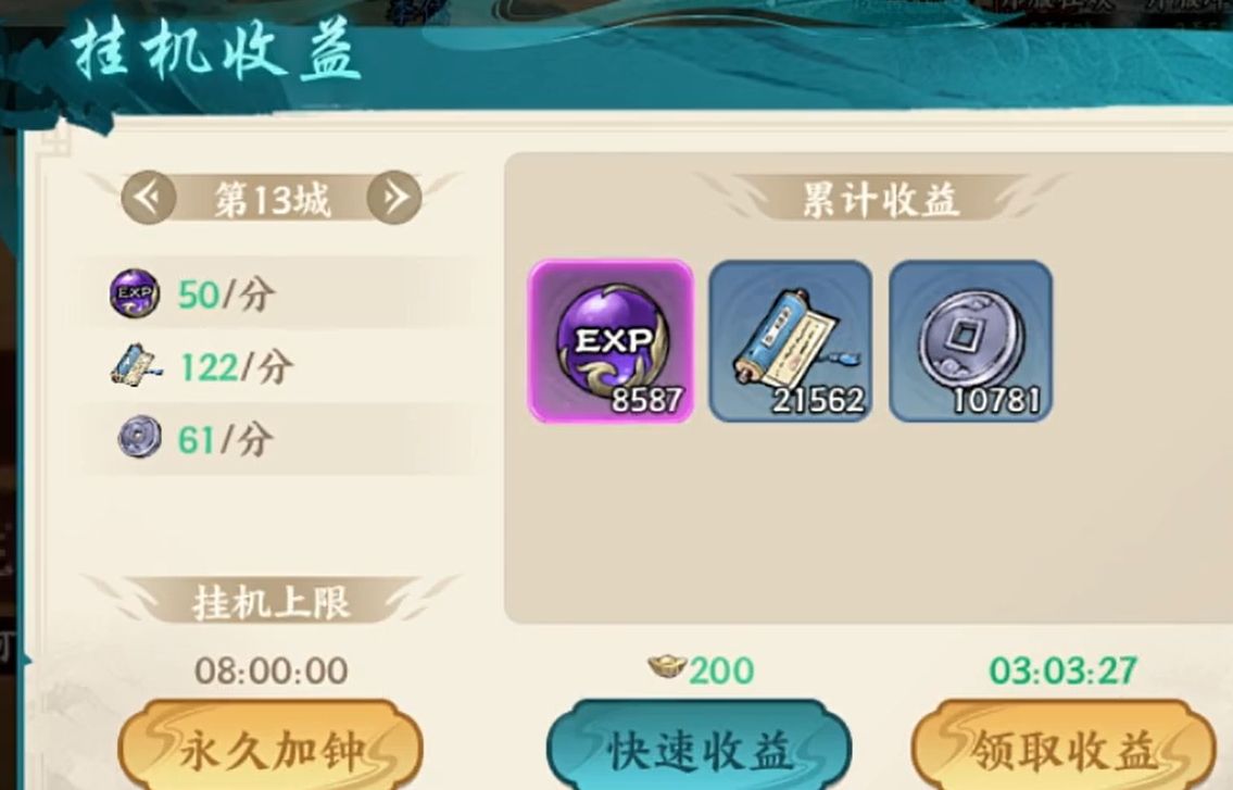 百战群英能让各位获取到经验值的方法还是挺多的,但在众多玩法还未解锁的初期,人们主要通过推进主线关卡来完成经验的获取,并且过主线关卡还能连带着去完成很多的主线任务,继而又能为各位带来一笔经验累积。当玩家们的主线推进进度受阻后,可通过挂机收益来获取经验,该玩法最多能为人们积累八小时(没开月卡权益时)的经验,是人们在渡过了开荒期后最为主要的经验来源,而且它还可让玩家每天领取一定次数的快速收益,不用等待就能获得几小时的挂机资源,免费次数用完后还可花费元宝继续为自己增加可使用的次数,可极大地提升人们的升级效率。