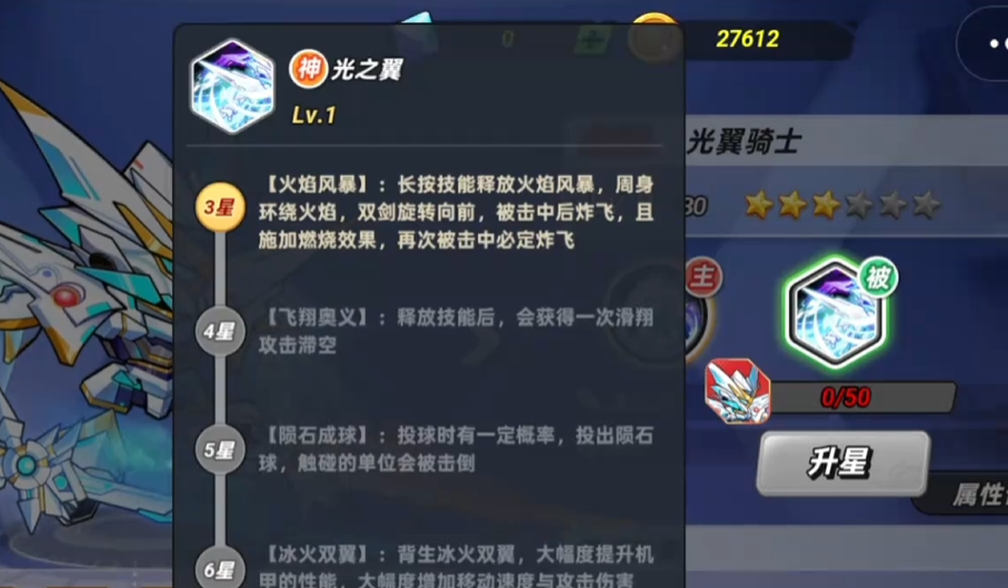 骑士的主要技能叫做飞火流萤。在施展之后将会化身成为流星,并且冲至目标,前方的所有敌人都将会受到一定范围内的伤害,在成功命中敌人之后,不仅能够将其击倒,还将会施展减速的效果,该技能是可以进阶的,当升到三阶的时候,技能的cd将会大幅度的降低。副技能光之翼,在施展之后将会触发火焰风暴,并向前方旋转,击中敌人后对其添加燃烧效果,并将其炸飞,如果在燃烧效果持续期间再次击中对方,则可再次炸飞。
