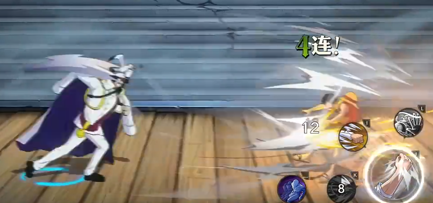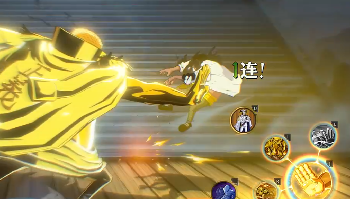 在普通状态下,战国的普攻共五段。前两段为连续出拳,速度快、衔接流畅;第三段向前突进撞击,具备击飞效果;第四段使用左手下勾拳提升连招稳定性;第五段以飞踢收尾完成连段。长按普攻可进入连打模式,期间每次攻击都会附加拳风特效,增强打击范围与视觉反馈。