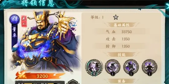 无双董卓是这一个阵容中的坚实后盾,枪兵的抗伤定位,然后搭配自身的技能就可以把肉盾直接玩出一个新高度。怒气技能雷霆一击专门是挑敌方攻击比较高的单位,下手有700%的基础伤害,而且还可以转换成50%,然后作为自身的护盾。16星之后,那自然就可以迅速的提升,会有850%加上2500的伤害,还有55%的护盾转化率。可以切换后排,还能够抵抗伤害。横征暴敛觉醒技能会有一个溅射伤害,并且还有减怒150的效果,可以有效压制敌方的大招循环,所以实用性很出色。