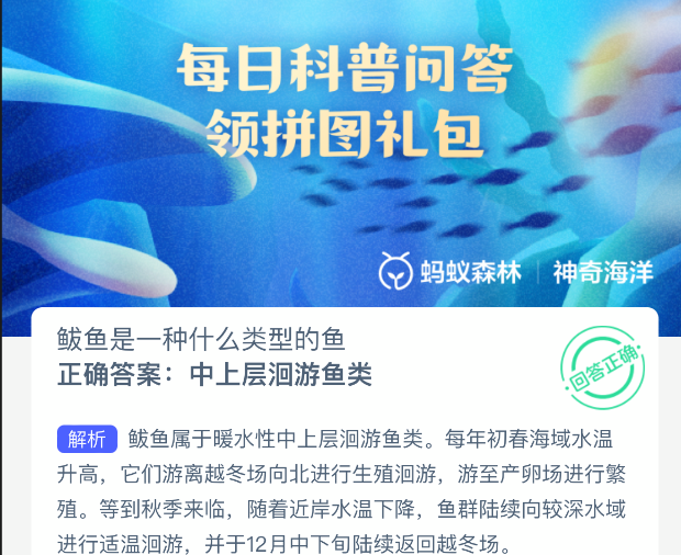 以上就是鲅鱼是一种什么类型的鱼?神奇海洋今天答案最新2025年11月15日分享,更多相关攻略内容,请点击关注更新!