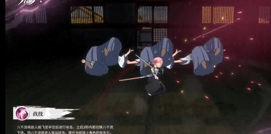 释放战技后,草鹿八千流会先将目标挑空并追加一次强力斩击。此技能的核心用途并非单纯输出,而在于触发其后台增益机制。建议在技能释放后的3秒内迅速替换角色下场,一旦进入观战状态,即可为当前出战队友提供攻击力增益。此外,在队友使用普攻或分支攻击时,草鹿八千流还能持续积攒必杀技能量,实现资源循环。