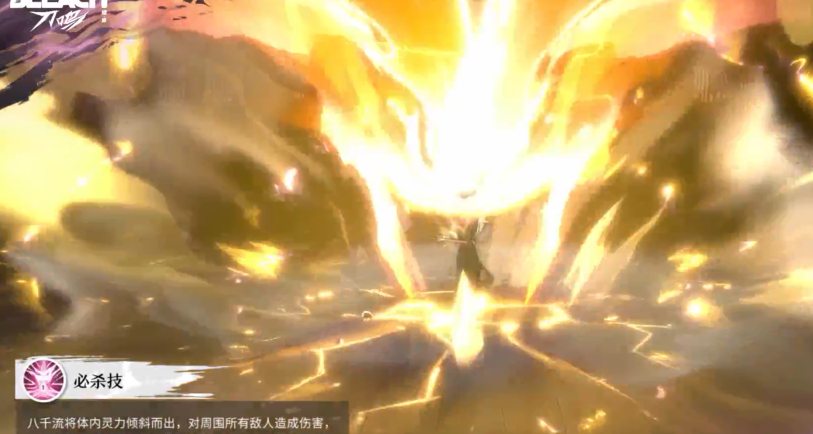 发动必杀技时,草鹿八千流会释放体内全部灵力,以大范围斩击打击周围所有敌人,并附加群体伤害效果。与此同时,该技能还会赋予队友鼓舞状态,显著提升后续斩系技能的伤害输出能力。这一特性使其成为队伍中不可或缺的增益核心,尤其适合搭配同属性角色形成联动效应。