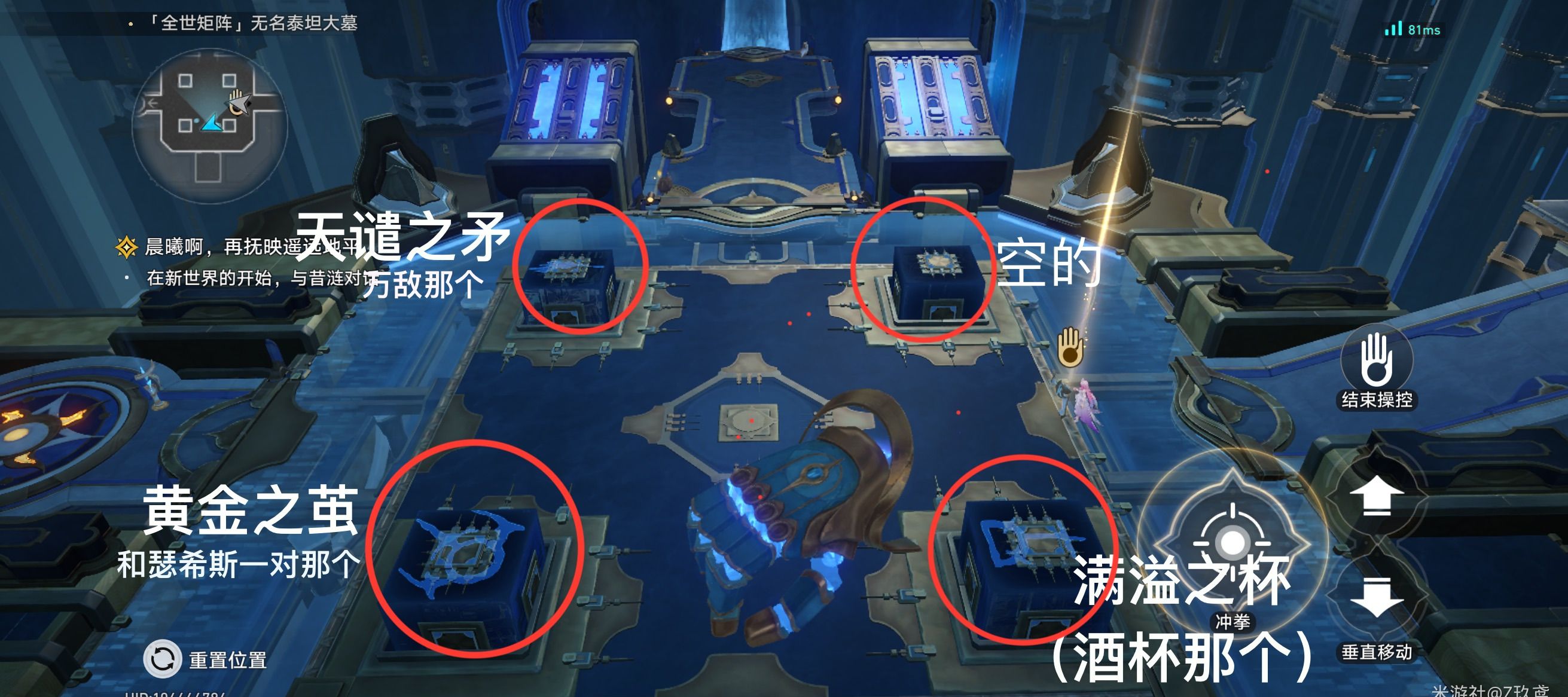 根据上面得到的对应关系,来到上层,操作扎格列斯之手撞击对应的方块: